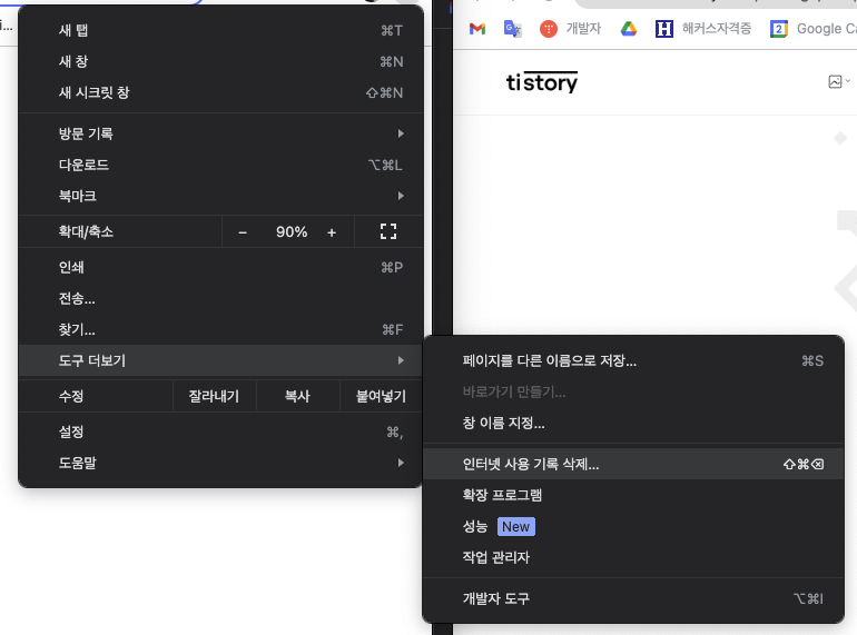 - 캐시 삭제하기 : 도구 더 보기 > 인터넷 사용기록 삭제