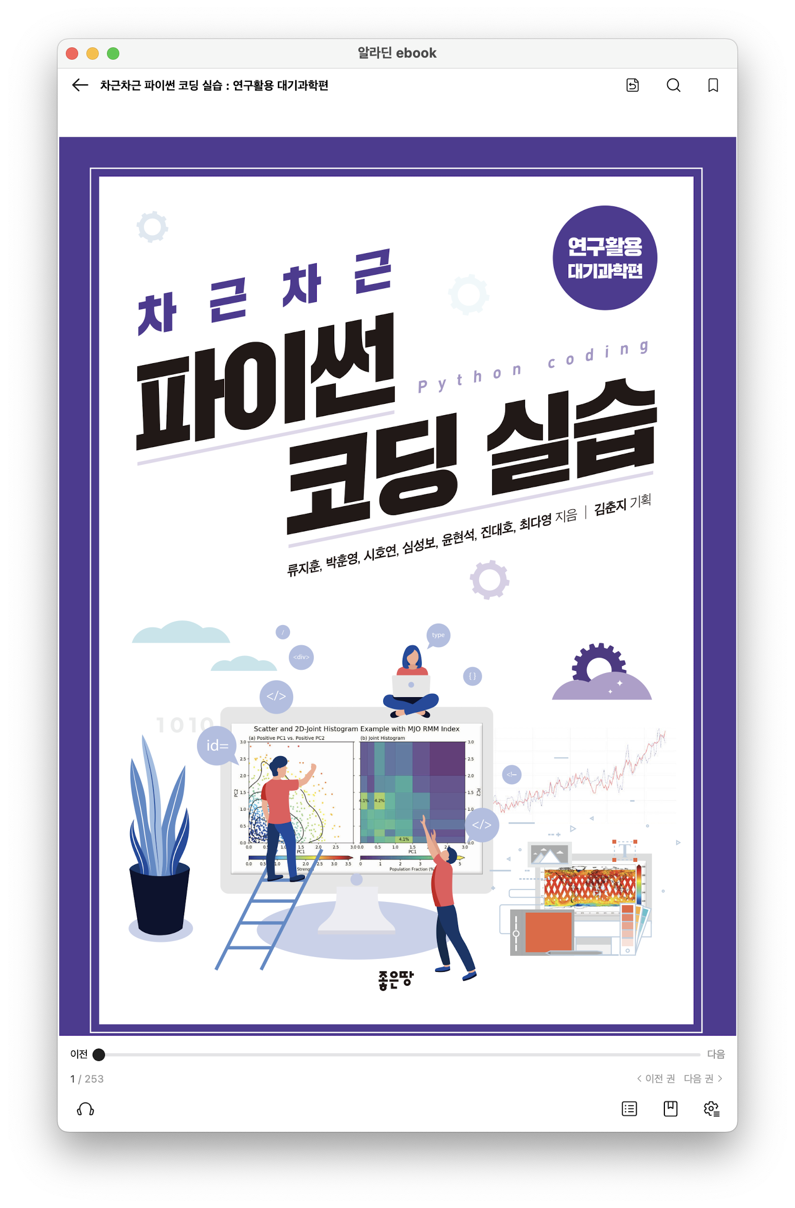 저는 전자책으로 구매해서 한쪽창에 띄어놓고 따라 하면서 스터디를 할 예정입니다. 다음 포스팅에서는 "차근차근 파이썬 코딩실습(연구활용 대기과학 편)"의 실제 활용 예시와 학습 후기를 공유하도록 하겠습니다.