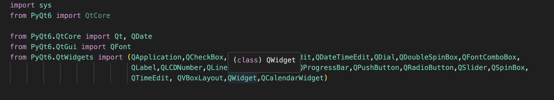 - PyQt6의 QtWidgets 클래스는 모듈 구조를 사용하지 않음