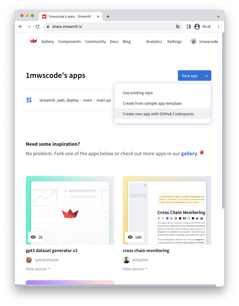 2. Streamlit 웹배포 순서