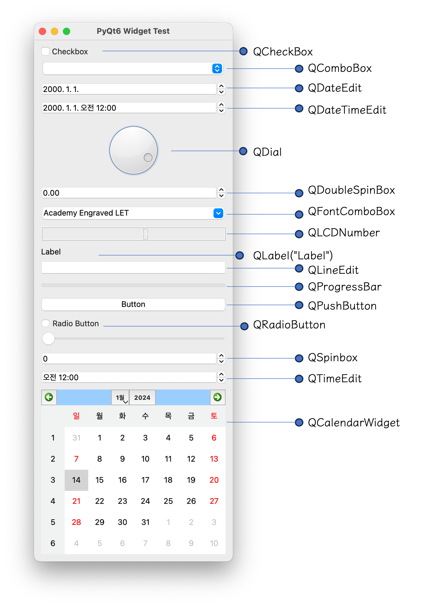 그래서 이 포스팅은 PyQt6에서 사용할 수 있는 다양한 위젯을 소개하려고 합니다.