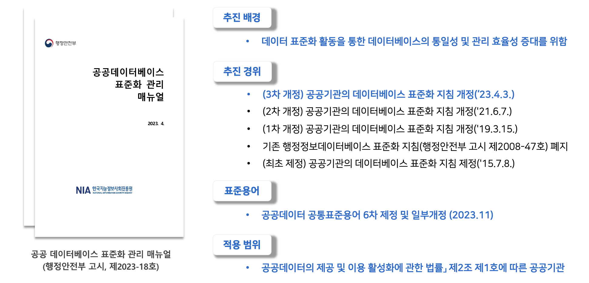 - 이는 기존의 행정정보데이터베이스 표준화 지침을 대체하는 중요한 변화였습니다.