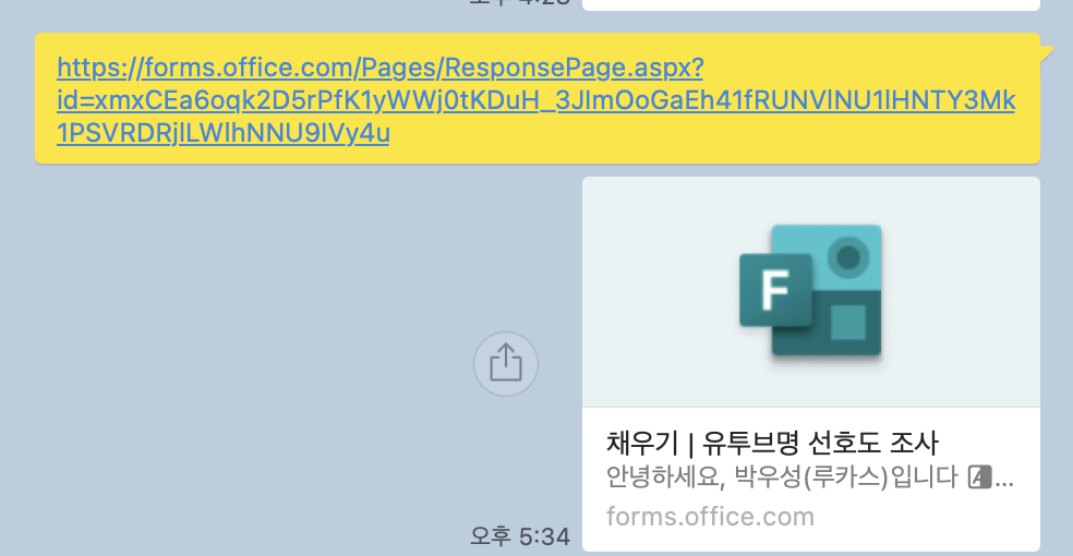제가 사용한 설문조사 플랫폼은 '네이버폼' 대신 'Microsoft Forms' 이용해 설문조사를 진행했습니다.