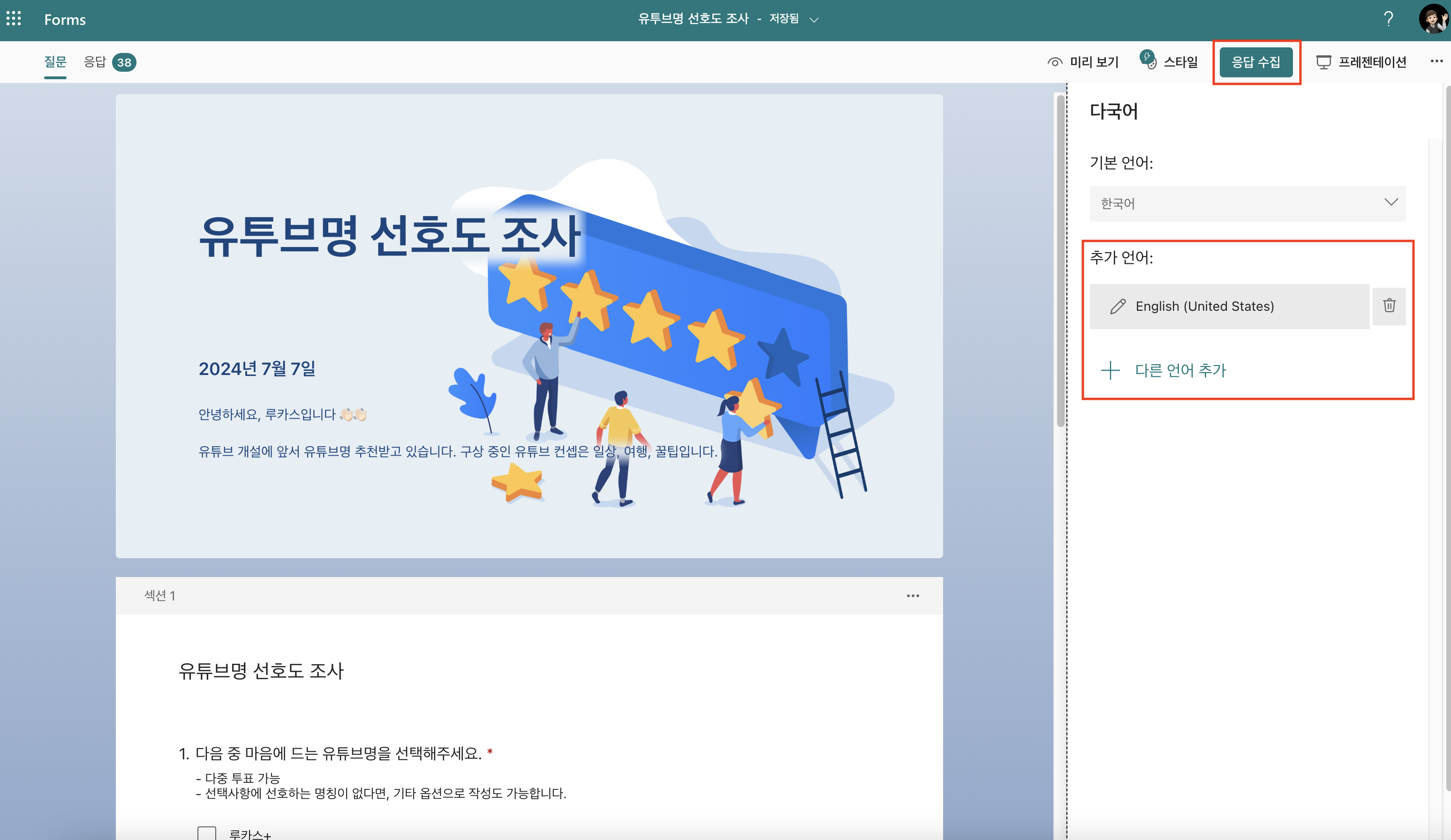 여러분도 설문조사가 필요한 경우, Microsoft Forms 활용해 보세요.
