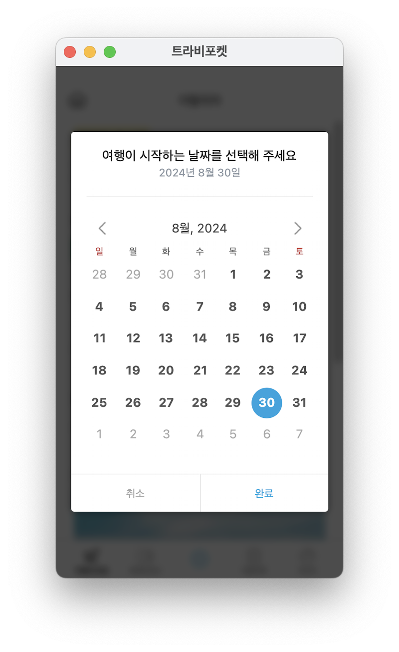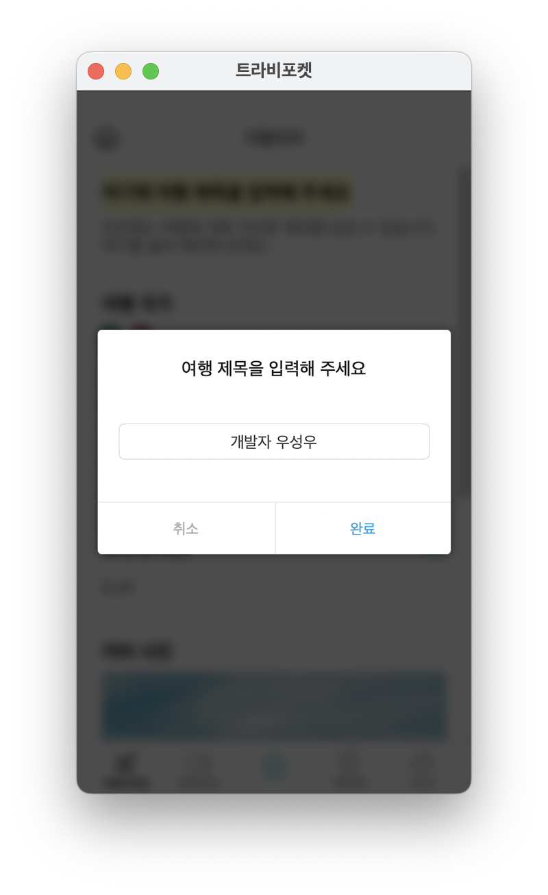 여행제목, 여행일자(시작일, 종료일)를 클릭하여 본인의 여행 페이지를 생성합니다.