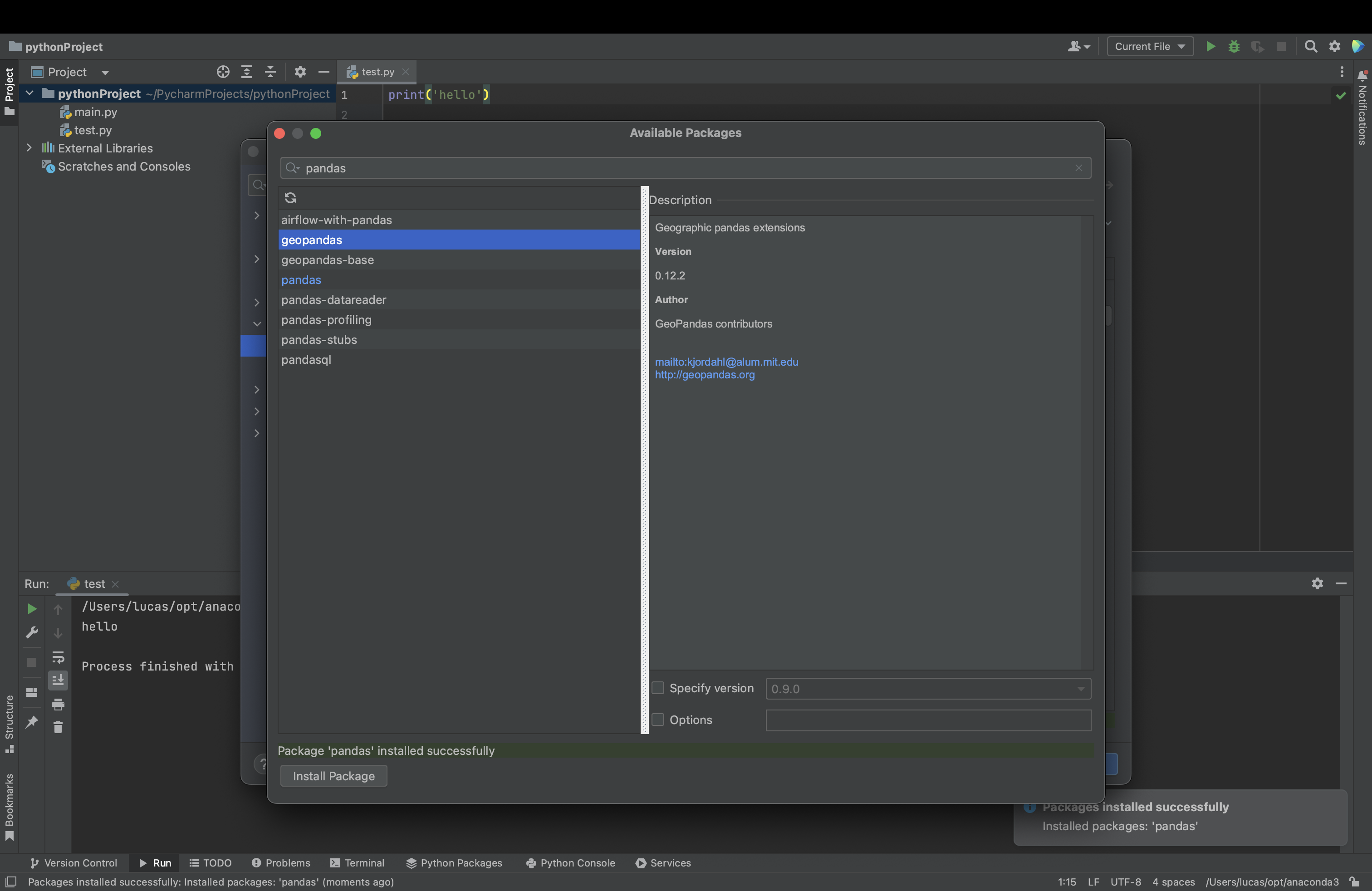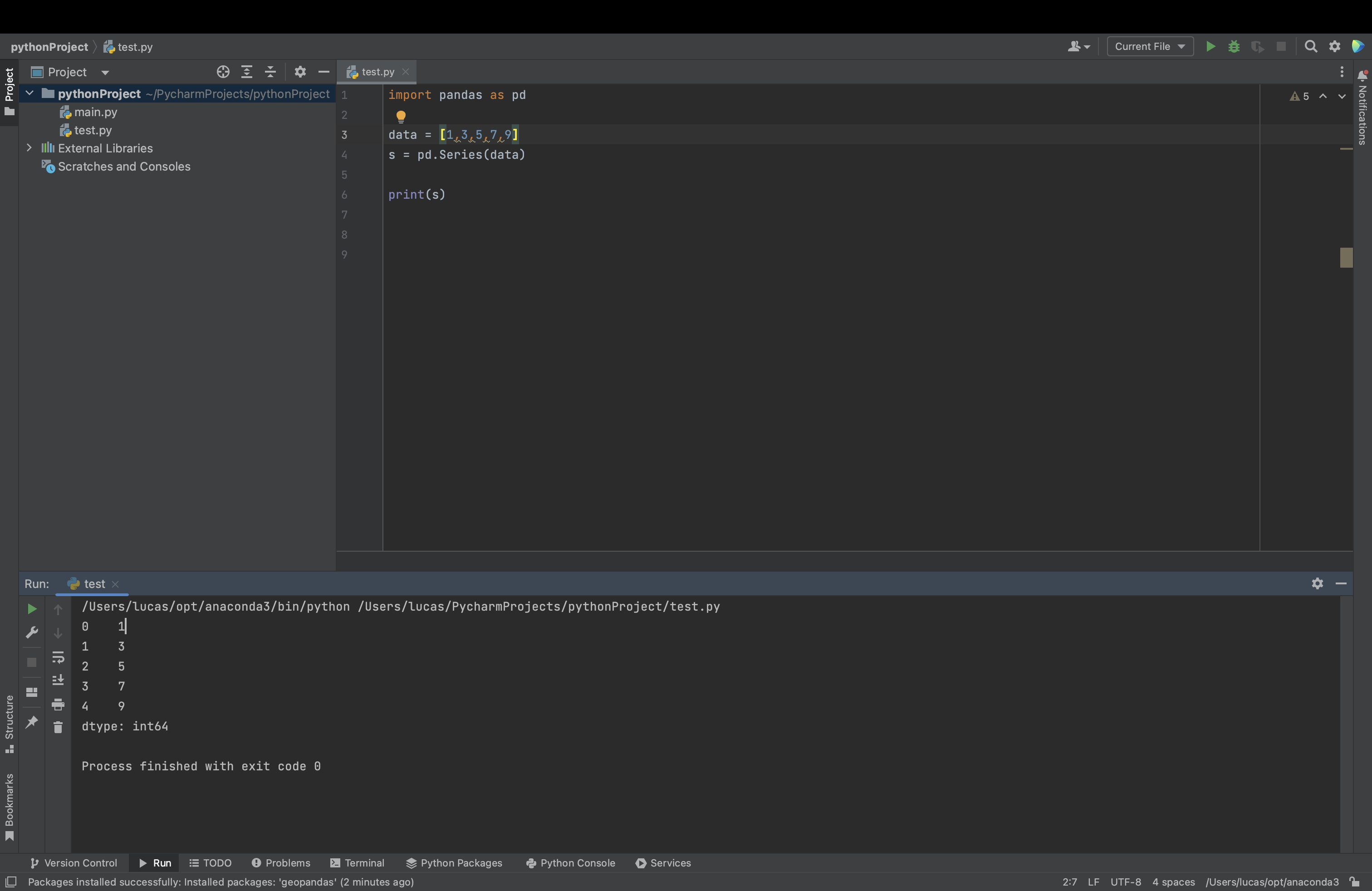 pandas 설치이후, 구동 확인