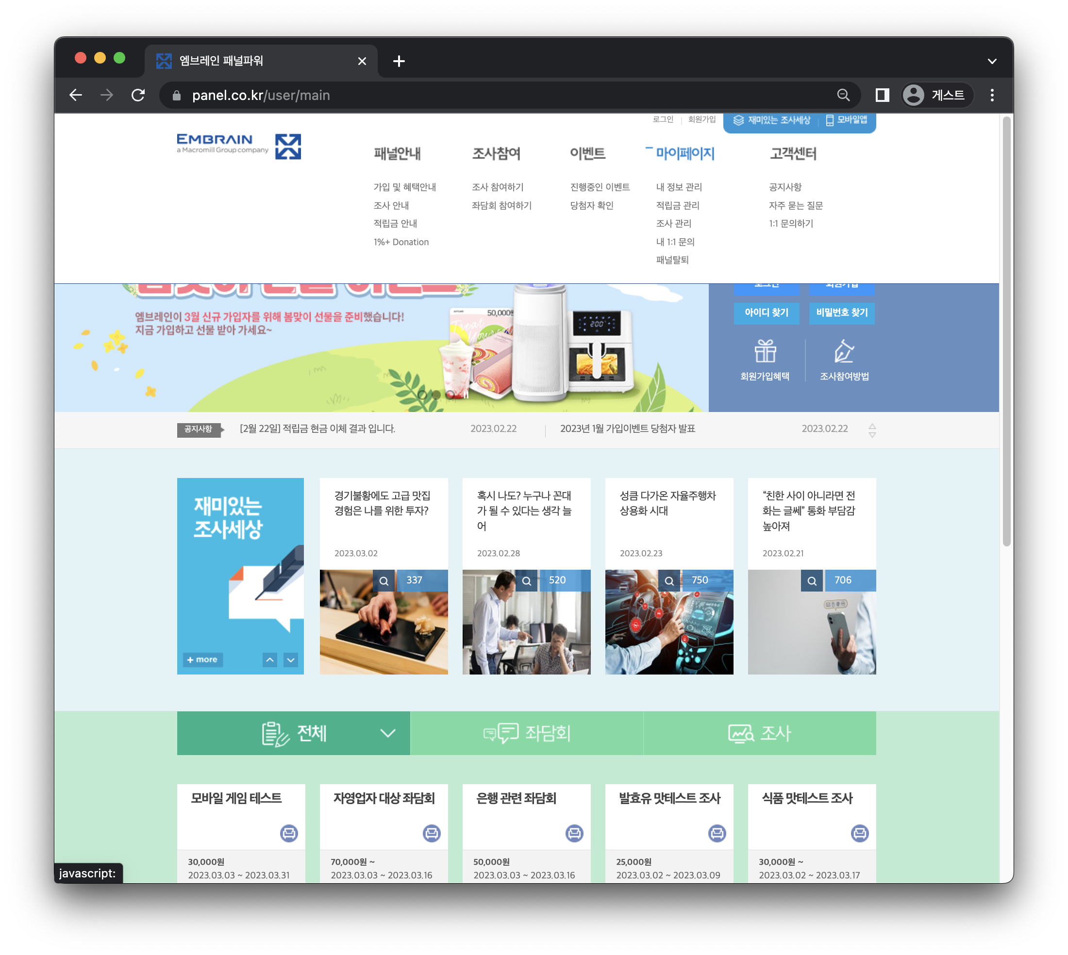 - 엠브레인 패널파워 홈페이지 가입한다.