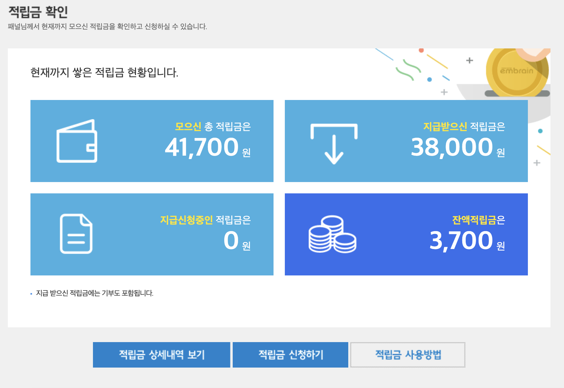 엠브레인의 경우, 매달 추천인 제도를 진행하고 있습니다.