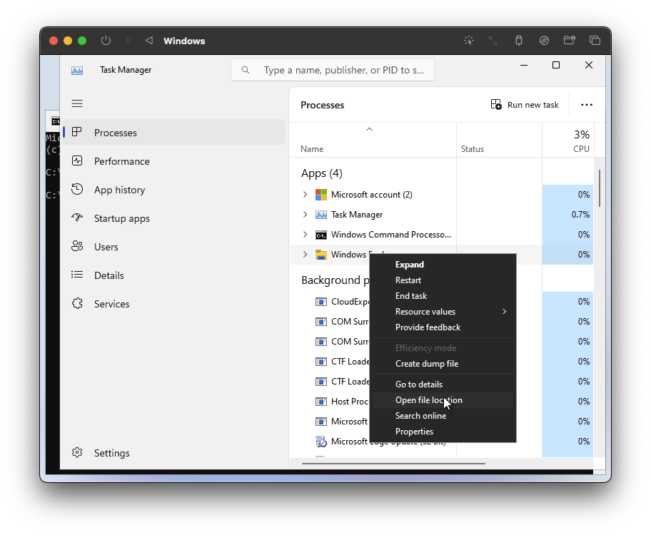 - 이에 taskmgr을 입력해서 작업관리자 창을 띄웁니다.