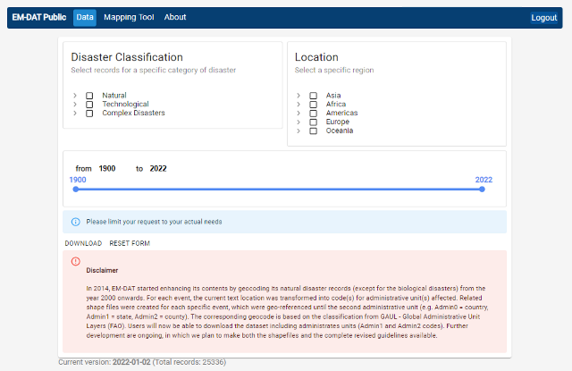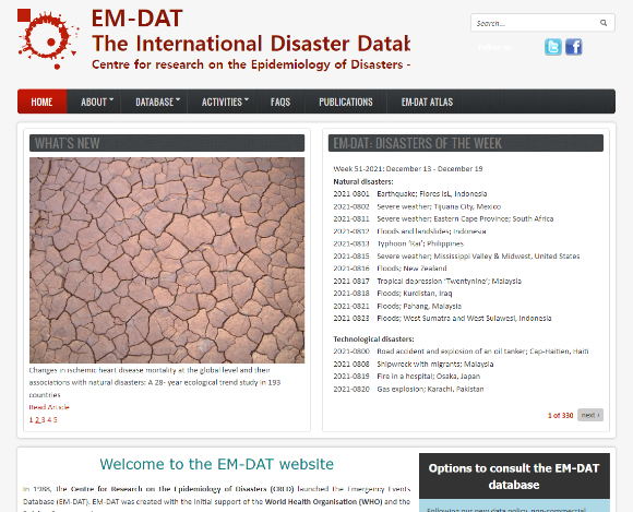 - EM-DAT(The International Disaster Database) https://public.emdat.be/about