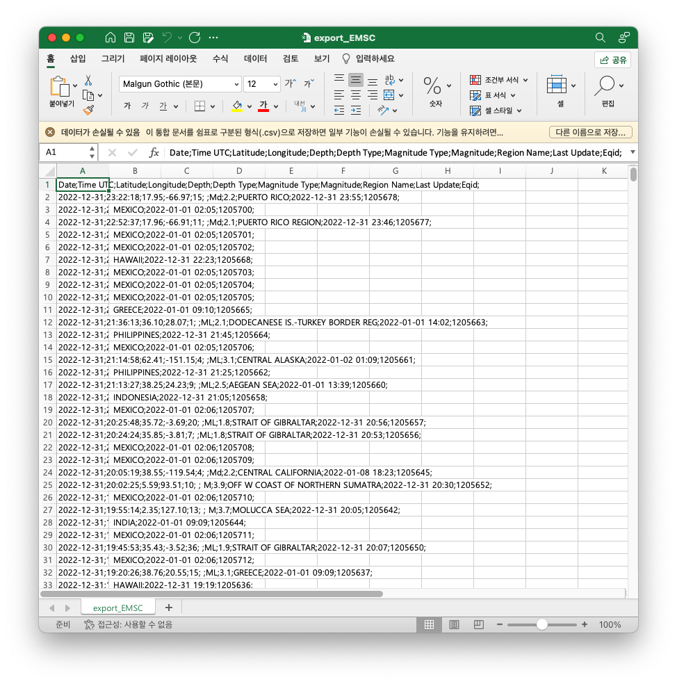 데이터는 기상청과 EMSC에서 다운로드가 가능하지만, 필자는 EMSC에서 다운로드하여서 사용하였습니다.