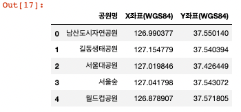 df2 = D1[["공원명","X좌표(WGS84)","Y좌표(WGS84)"]]