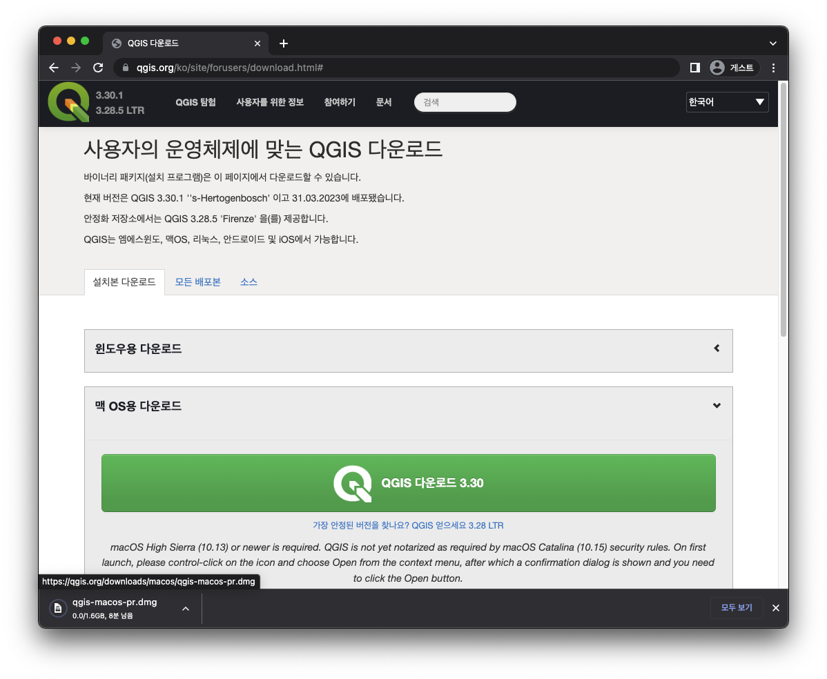 맥북으로 QGIS 다운로드 및 설치하는 방법